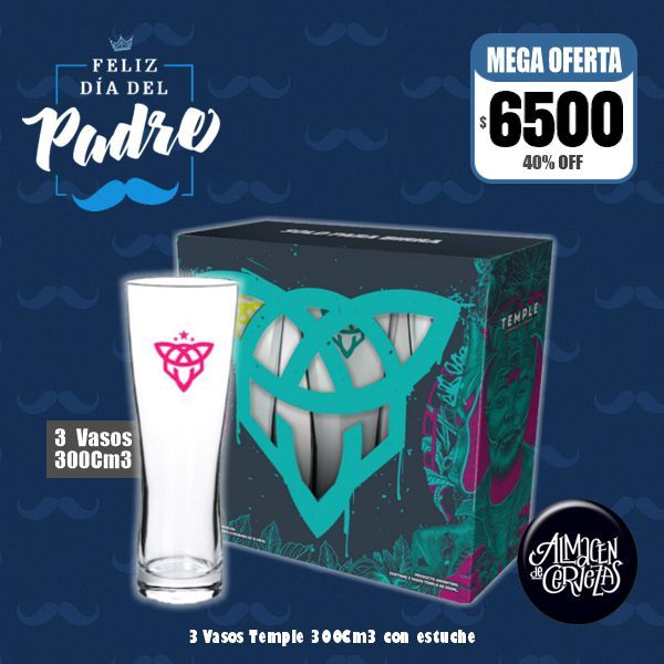 3 Vasos de diferentes colores Temple 400Cm3 Vidrio (estuche) .